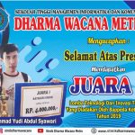 SELAMAT KEPADA MUHAMMAD YUDI ABDUL SYAWARI Mahasiswa STMIK Dharma Wacana Metro Mendapatkan Juara 1 Lomba Teknologi dan Inovasi Terapan yang diadakan oleh Badan Perencanaan Pembangunan Daerah (Bappeda) Kota Metro Tahun 2019